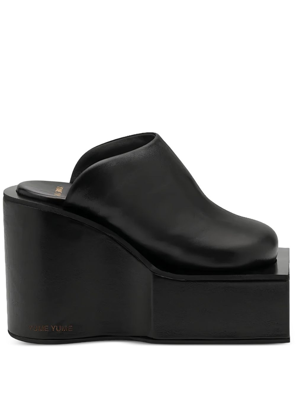 platform wedge pumps Highlights - Black - Leather upper - Curved wedge heel - Square platform sole - Slip-on style - Closed toe Imported Composition Outer: Recycled Leather 50%, Recycled Polyester 20%, Polyester 15%, Other Materials 15% Lining: Microfibre 100% Sole: Rubber 100%