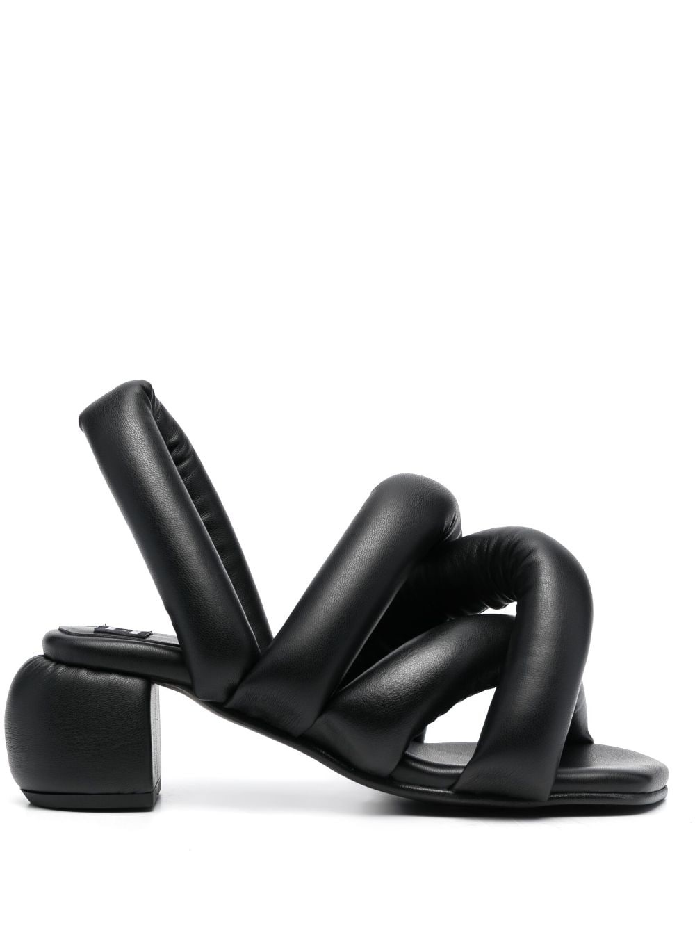 x Henrik Vibskov sausage heel sandals Highlights - Black - Padded design - Crossover strap detail - Open toe - Square toe - Slip-on style - Branded footbed - Mid block heel Imported Composition Other fibres 100% SIZE & FIT Measurement HEEL 2.55 in(6.5 cm) Sole height 0.39 in(1 cm)
