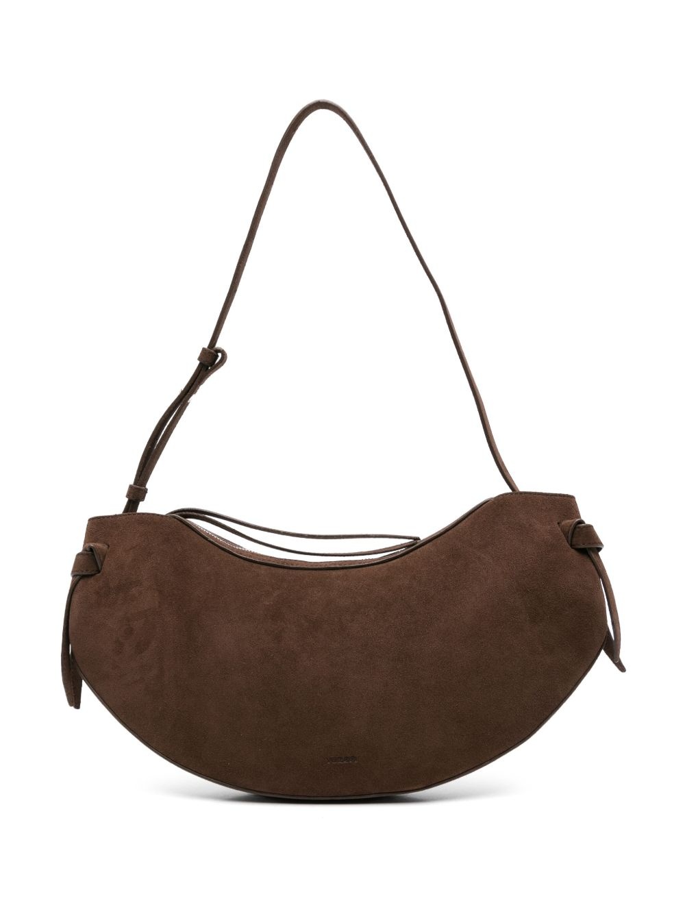 large Fortune Cookie shoulder bag Highlights - Coffee brown Imported Composition Outer: Calf Suede 100% SIZE & FIT Model measurements Height 5 ft 10 in(1.77 m) Bust/Chest 34.25 in(87 cm) Hips 37.4 in(95 cm) Waist 29.13 in(74 cm) Measurement DEPTH 3.54 in(9 cm) HEIGHT 7.08 in(18 cm) WIDTH 14.96 in(38 cm)