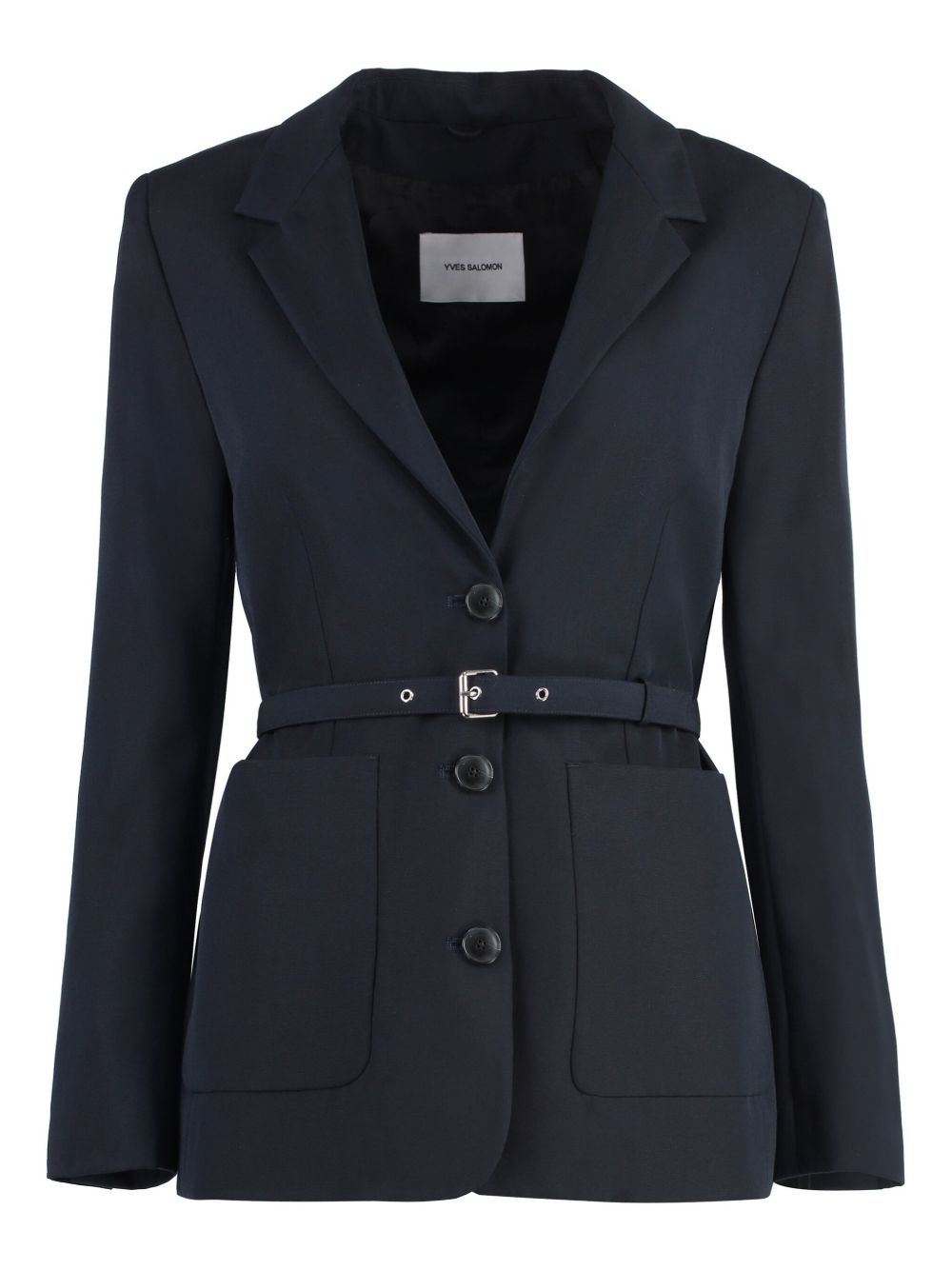 belted blazer Highlights - Midnight blue - Front button fastening - Two side patch pockets - Buttoned cuffs - Shoulder pads Made in France Composition Outer: Lamb Skin 100%, Polyester 55%, Wool 45% Lining: Polyester 100%