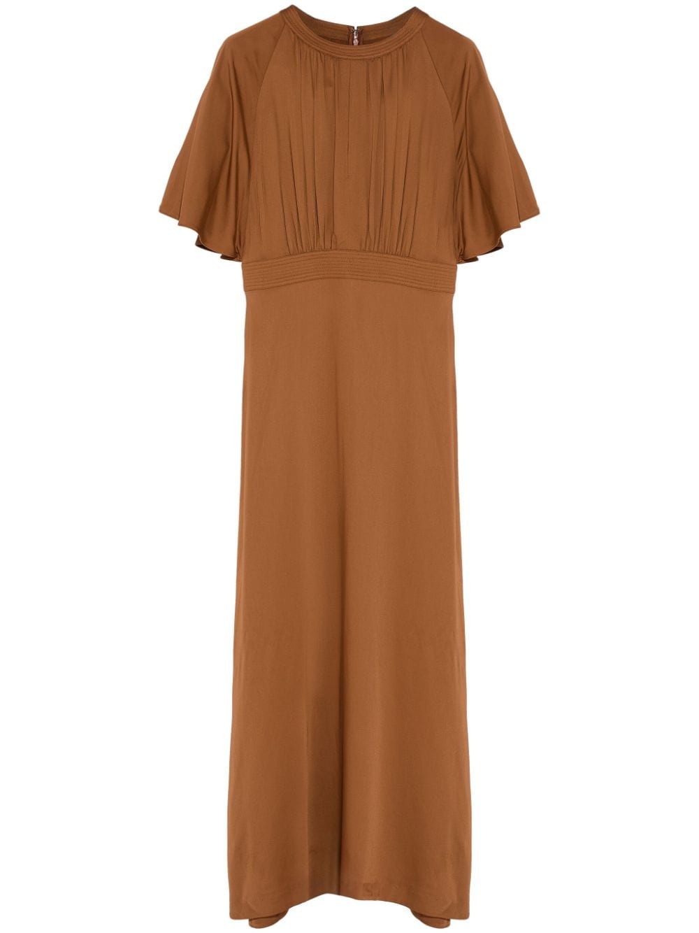 belted dress Highlights - Brown - Belted waist - Rear zip fastening - Crew neck - Short sleeves - Unlined Made in France Composition Viscose Satin 100%