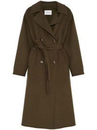 belted-waist coat Highlights - Khaki - Wool-cashmere blend/sheepskin - Shearling - Belted waist - Double-breasted button fastening - Two side welt pockets - Long sleeves - Straight hem - Mid-length Made in France Composition Wool 72%, Sheep Skin/Shearling 20%, Cashmere 8% Washing instructions Specialist Cleaning