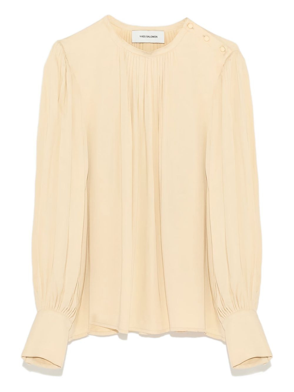button-embellishment blouse Highlights - Yellow - Pleated detailing - Puff sleeves - Button detailing - Crew neck - Long sleeves Made in France Composition Viscose Satin 100% Washing instructions Read Manufacturer Guidelines