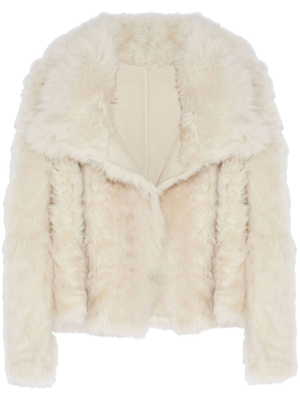 cropped leather jacket Highlights - White - Sheepskin - Wide notch lapels - Two side slit pockets - Cropped - Leather lining Made In France Composition Sheep Skin/Shearling 100% SIZE & FIT FittingInformation Designed to be unstructured, offering a loose fit throughout