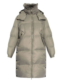 detachable-hood down coat Highlights - Charcoal grey - Detachable hood - Front zip fastening - Two-way welt pockets - Elasticated cuffs - Front pockets Imported Composition Lining: Down 50%, Duck Feathers 50% Outer: Lamb Shearling 100%, Polyester 100% Washing instructions Read Manufacturer Guidelines