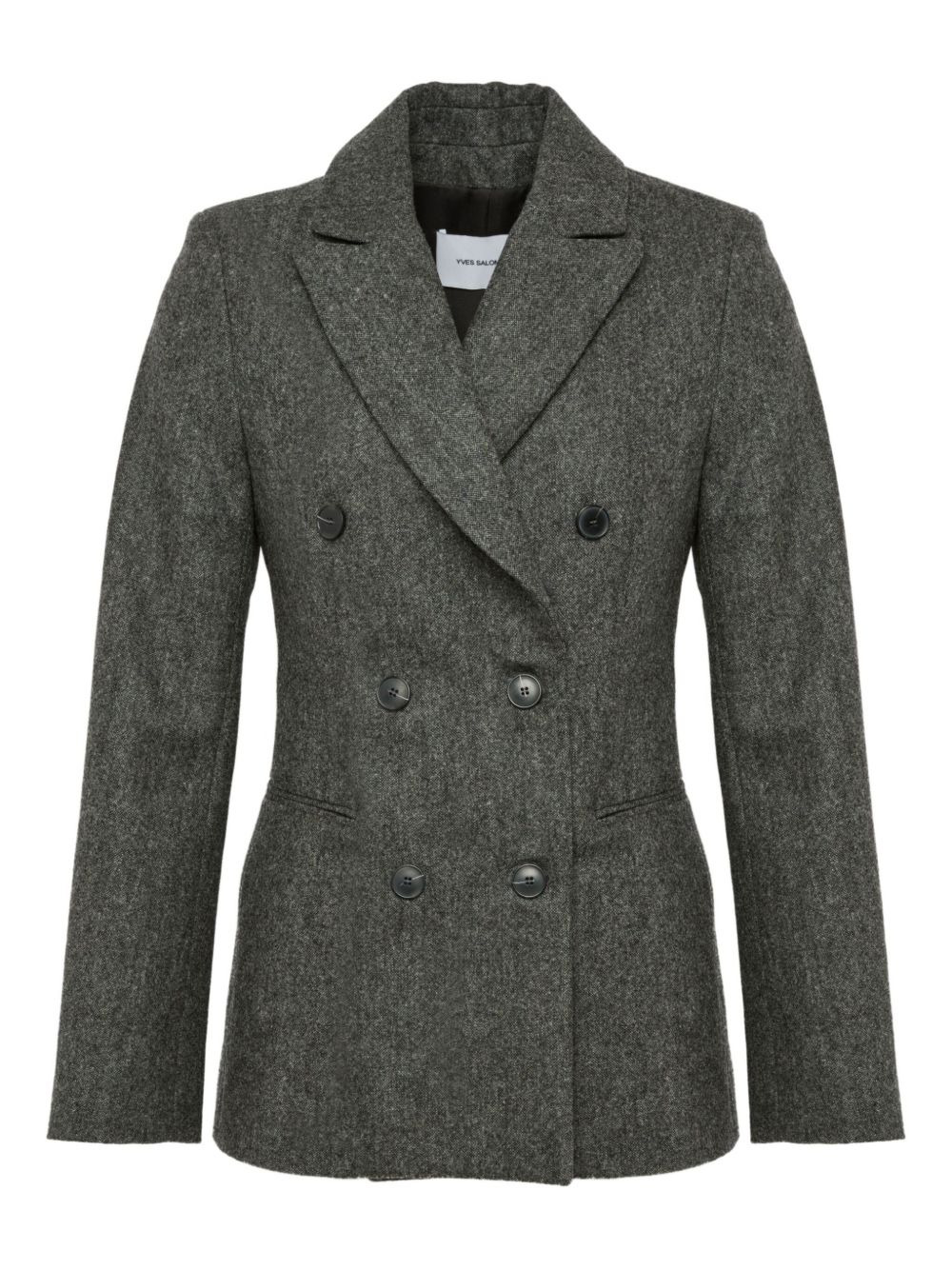 double-breasted fitted jacket Highlights - Grey - Front button fastening - Long sleeves - Side slit pockets Made in France Composition Outer: Virgin Wool 85%, Cashmere 15% Lining: Silk 100% Washing instructions Read Manufacturer Guidelines