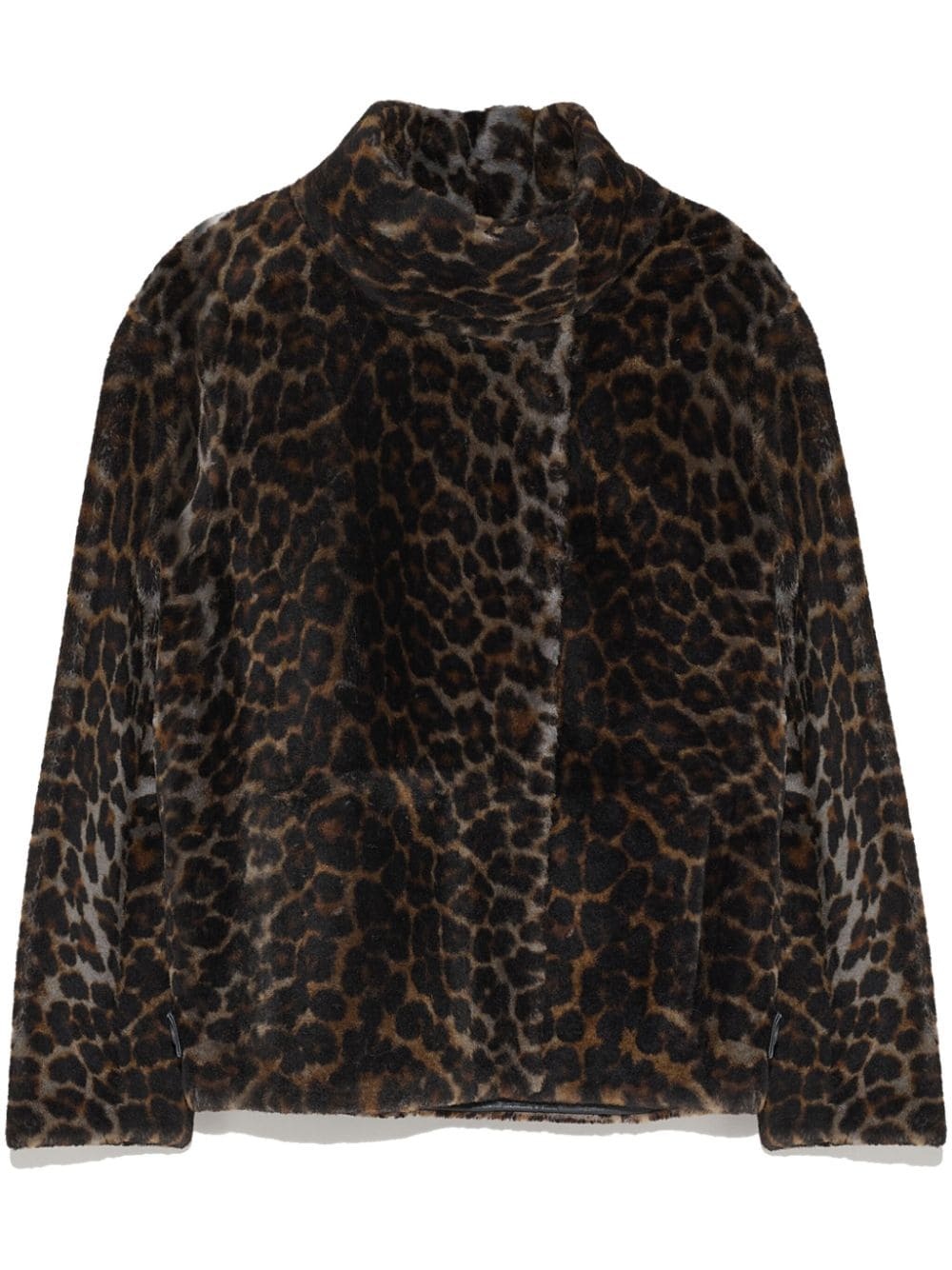double-breasted jacket Highlights - Brown - Sheepskin/shearling - Leopard print - Stand-up collar - Double-breasted hook-and-eye fastening - Long sleeves - Two side slit pockets - Straight hem Made in France Composition Outer: Sheep Skin/Shearling 100% Lining: Sheep Skin/Shearling 100% Washing instructions Specialist Cleaning