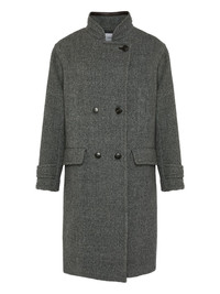 double-breasted virgin-wool coat Highlights - Grey - Herringbone weave - Double-breasted fastening - Brown leather trim - Buttoned cuffs Made in France Composition Outer: Virgin Wool 100%, Lamb Skin 100% Washing instructions Read Manufacturer Guidelines