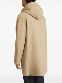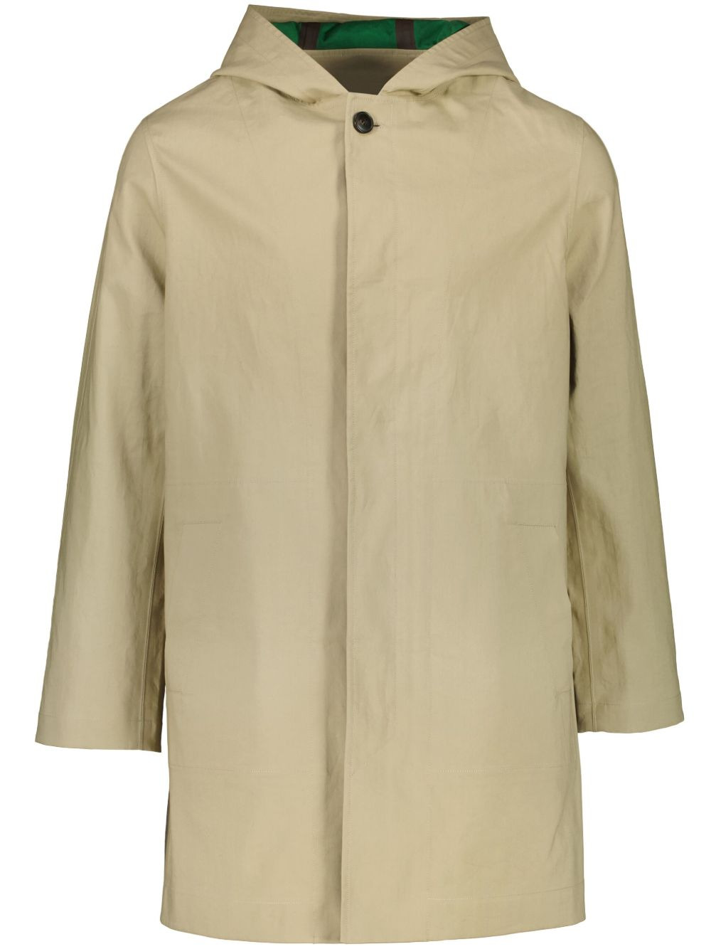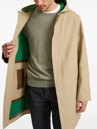double-sided hooded coat Highlights - Beige - Front button fastening - Two side welt pockets - Long sleeves Made in France Composition Cotton 95%, Lamb Skin 5% Washing instructions Read Manufacturer Guidelines