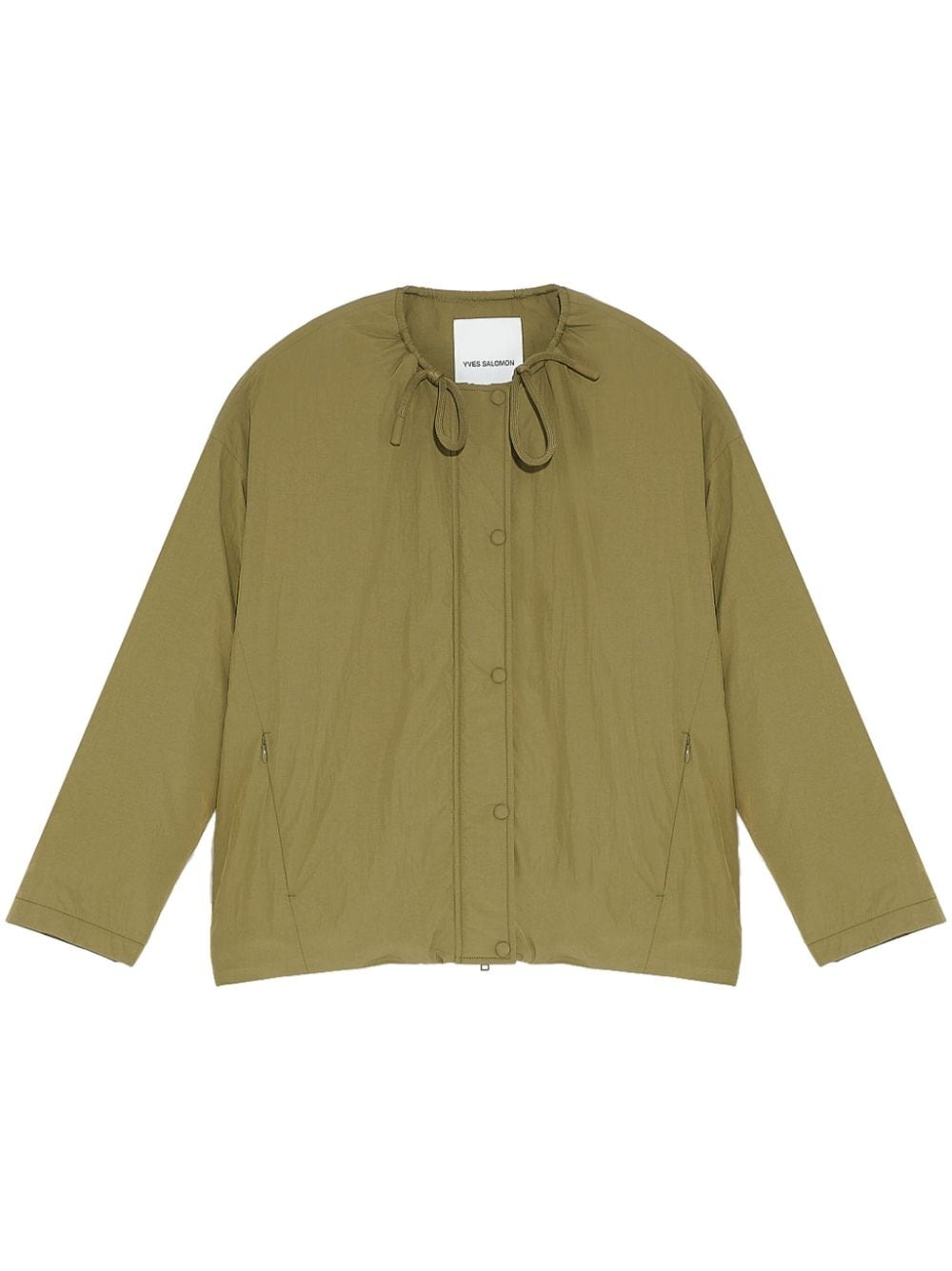 drawstring-neck down jacket Highlights - Olive green - Lambs wool - Duck down - Drawstring neck - Front two-way zip fastening - Press-stud placket - Water-repellent - Long sleeves - Front zip fastening pockets Made in France Composition Lambs Wool 100%, Duck Down 95%, Duck Feathers 5% Washing instructions Read Manufacturer Guidelines