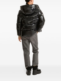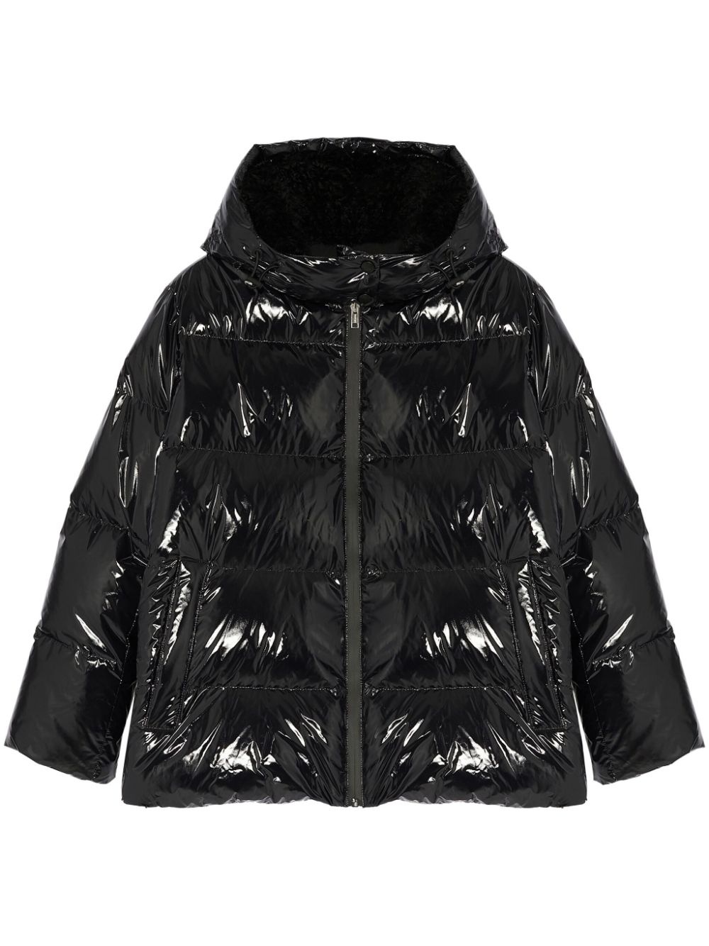 duck-down padded jacket Highlights - Black - Lambskin trim - Duck down - Padded design - Front zip fastening - Side zip fastening - Press-stud placket - Glossy finish - Classic hood - Two side welt pockets Made in France Composition Outer: Polyamide 60%, Polyester 20%, Lamb Fur 20% Lining: Polyamide 100%, Duck Down 95%, Duck Feathers 5%