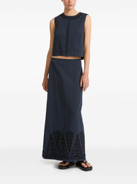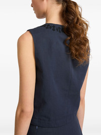 embroidered top Highlights - Prussian blue - Single rear button fastening - Round neck - Sleeveless Made in France Composition Cotton 58%, Organic Linen 30%, Fabric 12%