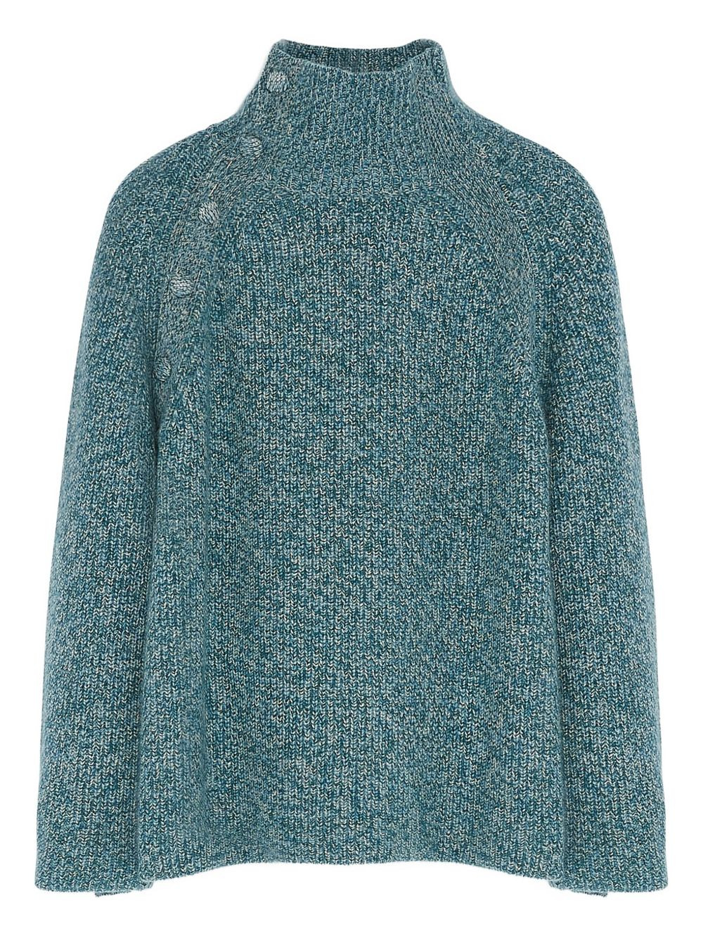funnel-neck button-detail sweater Highlights - Blue - Funnel neck - Button detailing - Raglan sleeves - Ribbed texture Made in France Composition Cashmere 100% Washing instructions Read Manufacturer Guidelines