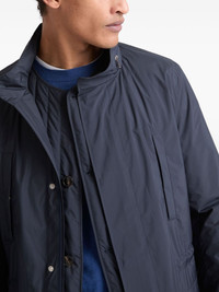 high-neck jacket Highlights - Navy blue - Front press-stud and zip fastening - Internal drawstring fastening waist - Two chest welt pockets - Two front flap pockets Made in France Composition Polyester 100%