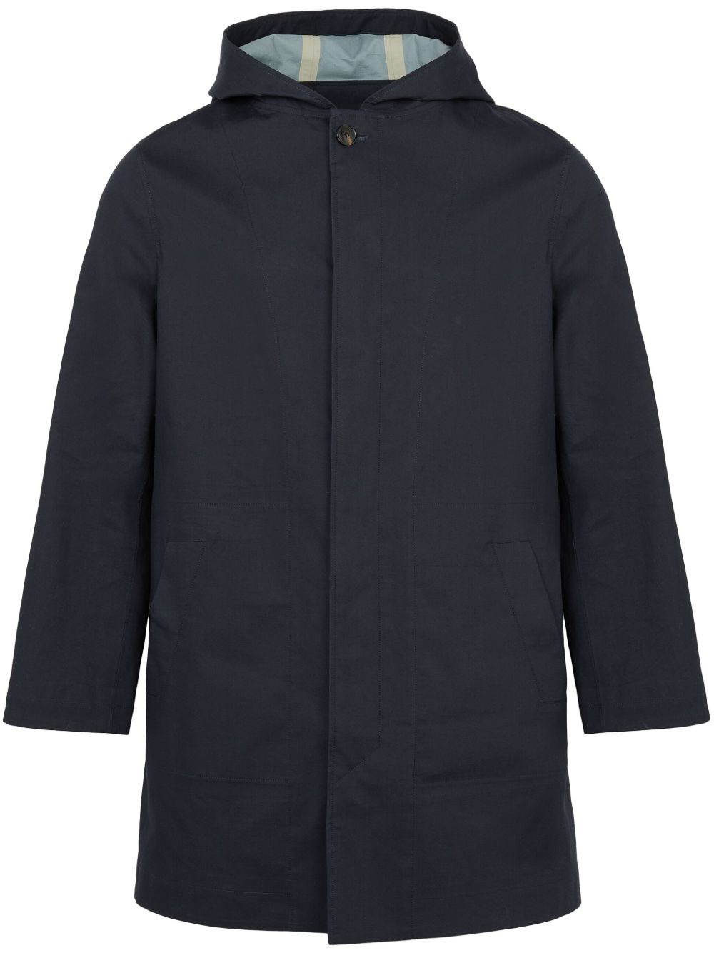 hooded coat Highlights - Navy blue - Front button fastening - Two side welt pockets - Slouchy hood Made in France Composition Outer: Cotton 95%, Lamb Skin 5% Washing instructions Specialist Cleaning