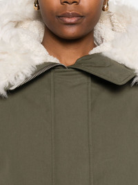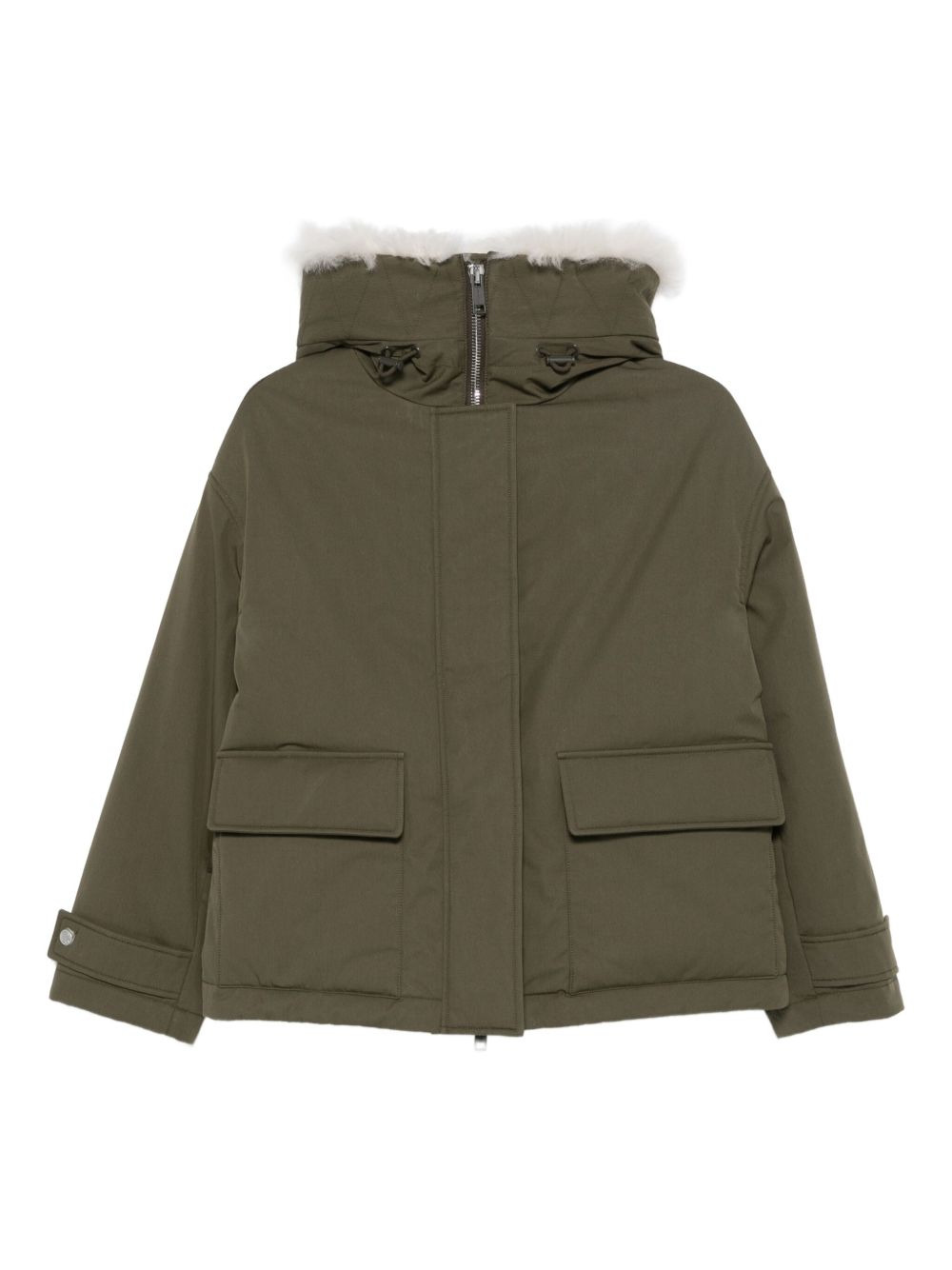 hooded patch-pocket jacket Highlights - Olive green - Faux fur-trimed hood - Zip fastening - Two-flap-patch pockets - Long sleeves - Buttoned cuffs Imported Composition Outer: Lamb Fur 100%, Cotton 72%, Polyamide 28% Lining: Polyester 100%, Duck Down 95%, Duck Feathers 5% SIZE & FIT Model measurements Height 5 ft 11 in(1.8 m) Bust/Chest 31.49 in(80 cm) Hips 36.61 in(93 cm) Waist 24.4 in(62 cm)