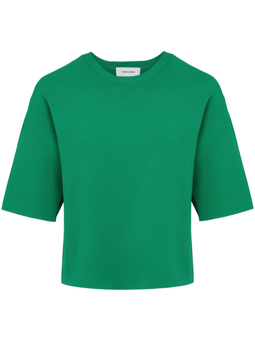 knitted cropped T-shirt Highlights - Bright green - Crew neck - Short sleeves - Straight hem Made in France Composition Microfibre Polyamide 83%, Polytetrafluoroethylene (PTFE) 17% SIZE & FIT FittingInformation Designed for a relaxed fit, this piece allows for comfort and movement when worn Made from a midweight non-stretch fabric, this piece offers minimal elasticity when worn