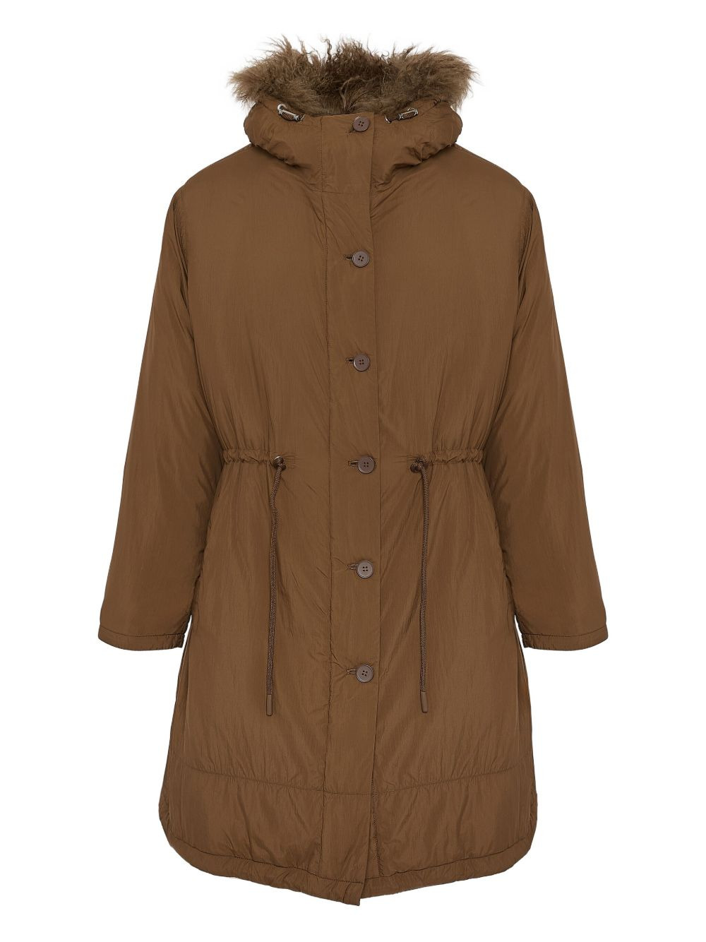 lambshearling-trimmed parka coat Highlights - Brown - Lambshearling trim - Drawstring waist - Button fastening - Hooded neckline - Long sleeves Made in France Composition Outer: Polyamide 80%, Lamb Shearling 20% Trims: Duck Down 95%, Duck Feathers 5% Washing instructions Read Manufacturer Guidelines