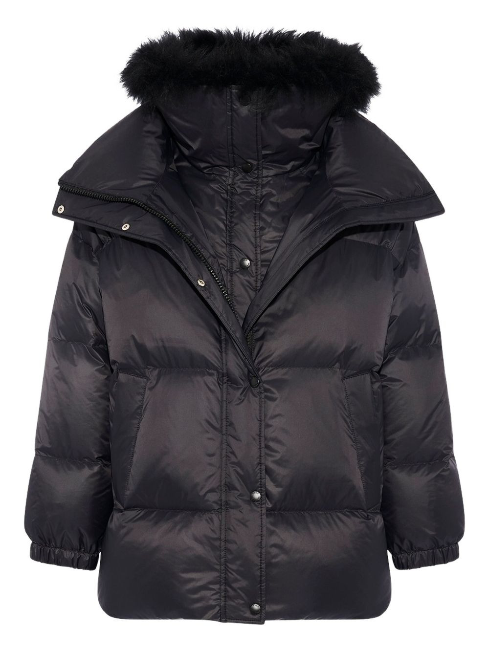 lambswool-trim puffer jacket Highlights - Black - Lambswool trim - Snap button fastening Made in France Composition Outer: Polyamide 80%, Lamb Shearling 20% Trims: Duck Down 95%, Duck Feathers 5% Washing instructions Read Manufacturer Guidelines