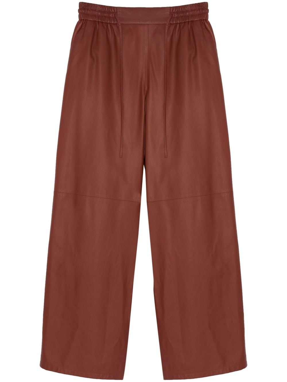 leather wide-leg trousers Highlights - Rust brown - Nubuck leather - Elasticated waistband - Two side slit pockets - Two rear patch pockets - Wide leg Made in France Composition Outer: Lamb Nubuck Leather 100% Lining: ENKA® Viscose 57%, PBT Elite 43%