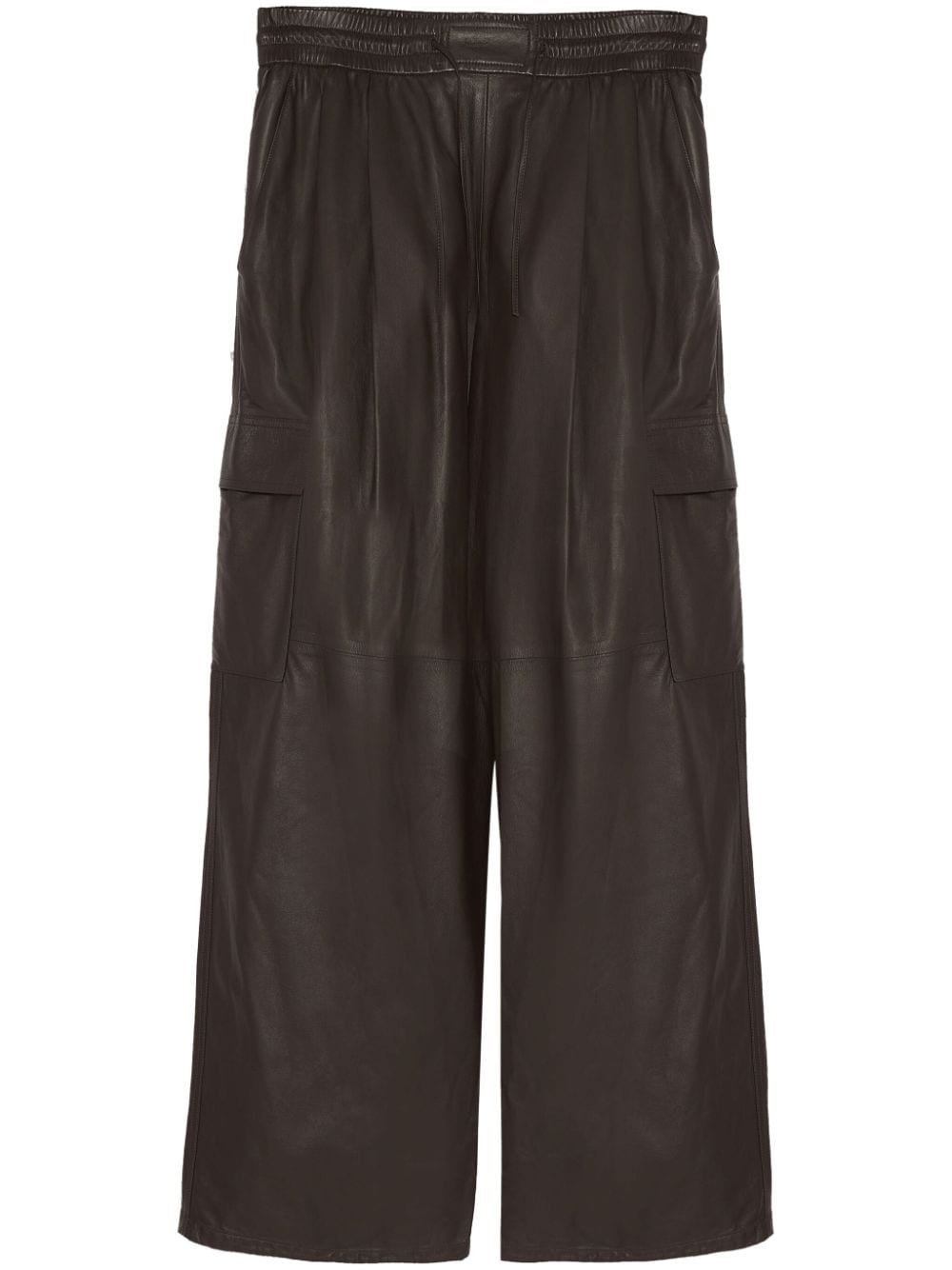 leather wide-leg trousers Highlights - Cedar brown - Nubuck leather - Elasticated drawstring waistband - Two side slit pockets - Two side cargo pockets - Two rear patch pockets - Wide leg Made in France Composition Outer: Lamb Nubuck Leather 100% Lining: ENKA® Viscose 57%, PBT Elite 43%