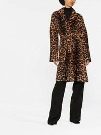 Reversible belted leopard-print shearling coat