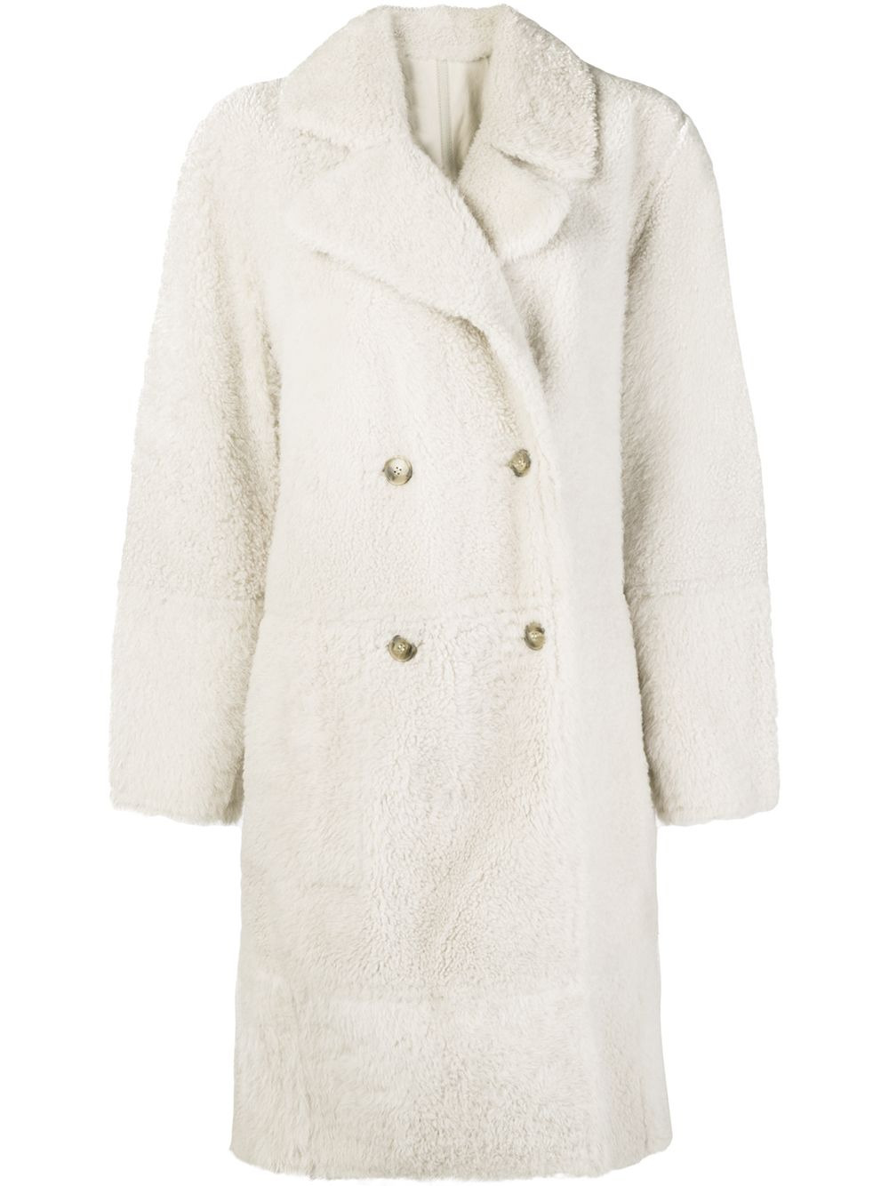 oversized shearling coat White red black cotton lamb skin fur oversized shearling coat from Yves Salomon featuring long sleeves and a button fastening. Made in France Composition Cotton 100%, Lamb Fur 100%, Lamb Skin 100% Washing instructions Specialist Cleaning