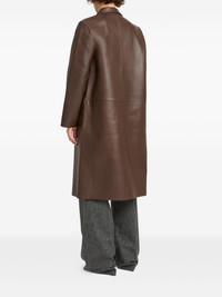 panelled leather coat Highlights - Brown - Leather - Button fastening - Straight cut - Front pockets - Notched lapels Made in France Composition Lamb Skin 100% Washing instructions Read Manufacturer Guidelines