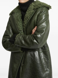 patent-finish leather coat Highlights - Dark green - Lambskin - Patent finish - Front button fastening - Classic collar - Long sleeves - Two side welt pockets - Shearling lining - Straight hem Made in France Composition Lining: Sheep Skin/Shearling 100% Outer: Lamb Skin 100%