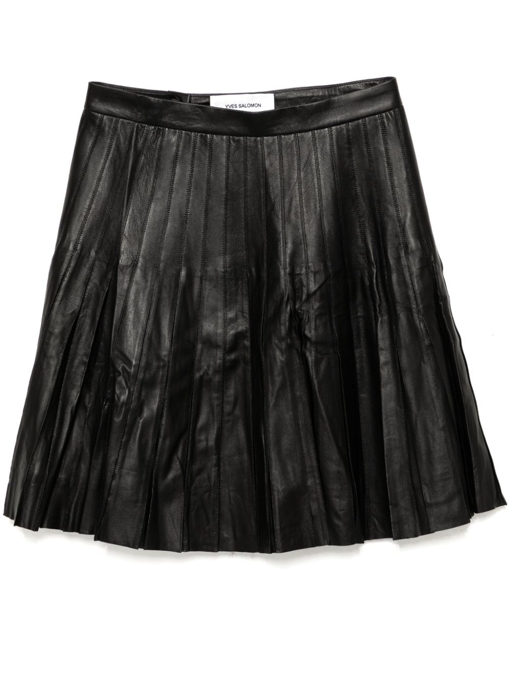 pleated mini skirt Highlights - Black - Lamb skin - Fully pleated - Rear zip fastening - Flared hem - Full lining Made in France Composition Lining: Viscose 57%, Polybutylene Terephthalate (PBT) 43% Outer: Lamb Skin 100% SIZE & FIT FittingInformation This mini-length skirt is intended to be worn just below the waist Firm leather offering little flexibility to maintain its durability and sturdiness