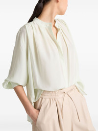 pleated silk shirt Highlights - Light green - Front button fastening - Buttoned-cuff sleeves - Band collar - Side slits Made in France Composition Outer: Silk 100% Lining: Viscose 100%