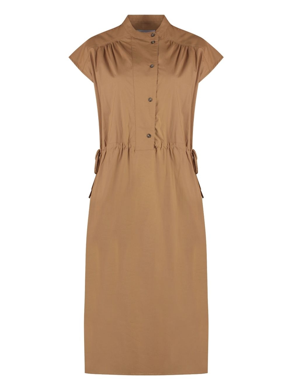 poplin shirt dress Highlights - Camel brown - Short front button fastening - Drawstring waist - Cap sleeves - Gathered detailing Made in France Composition Cotton 94%, Elastane 6%