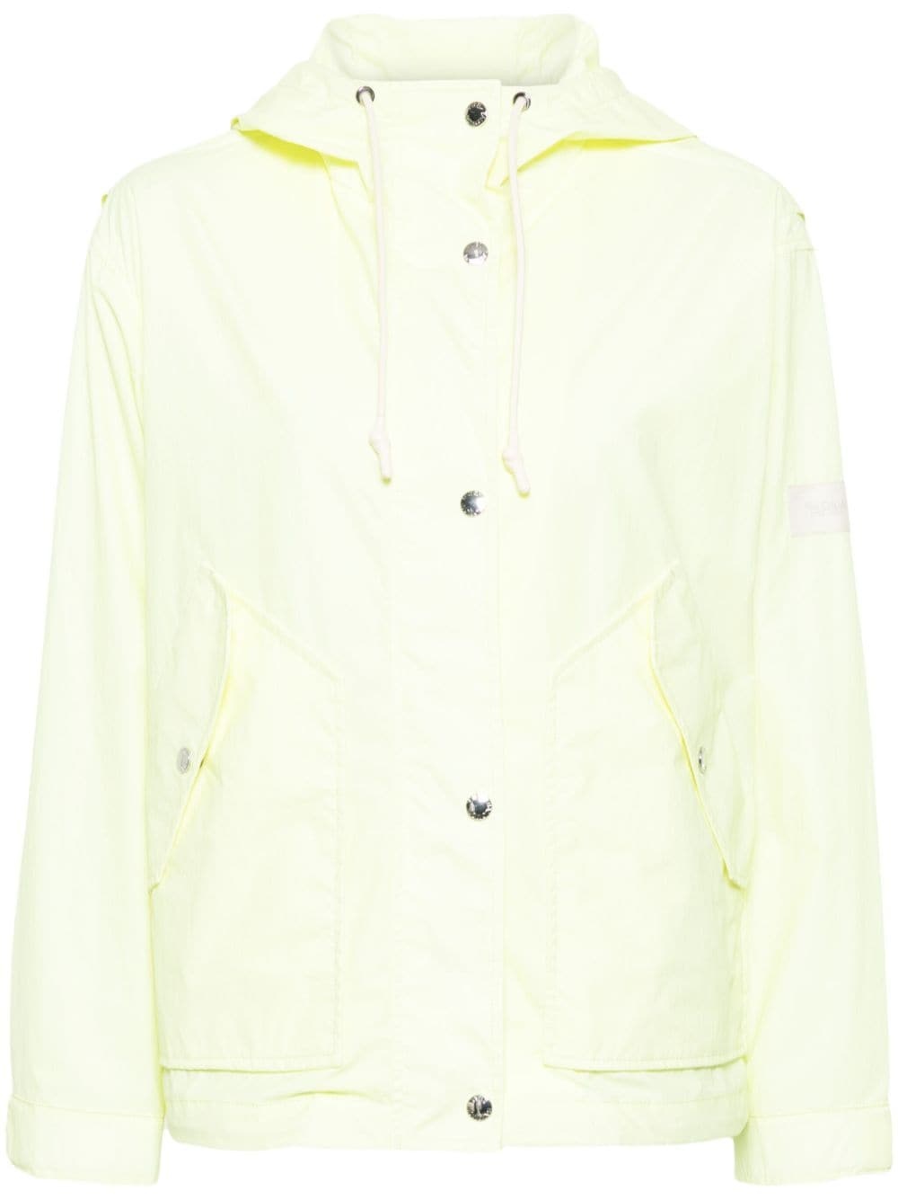 press-stud hooded jacket Highlights - Fluorescent yellow - Logo patch at the sleeve - Drawstring hood - Front press-stud fastening - Long sleeves - Press-stud fastening cuffs - Two side stud-fastening pockets - Straight hem Made in France Composition Polyamide 74%, Cotton 26% SIZE & FIT Model measurements Height 5 ft 9 in(1.76 m) Bust/Chest 29.13 in(74 cm) Hips 33.07 in(84 cm) Waist 22.83 in(58 cm) FittingInformation Designed to be unstructured, offering a loose fit throughout The internal drawstring at the hem allows for fitted preferences Made from a midweight non-stretch fabric This piece fits true to size – take your usual size
