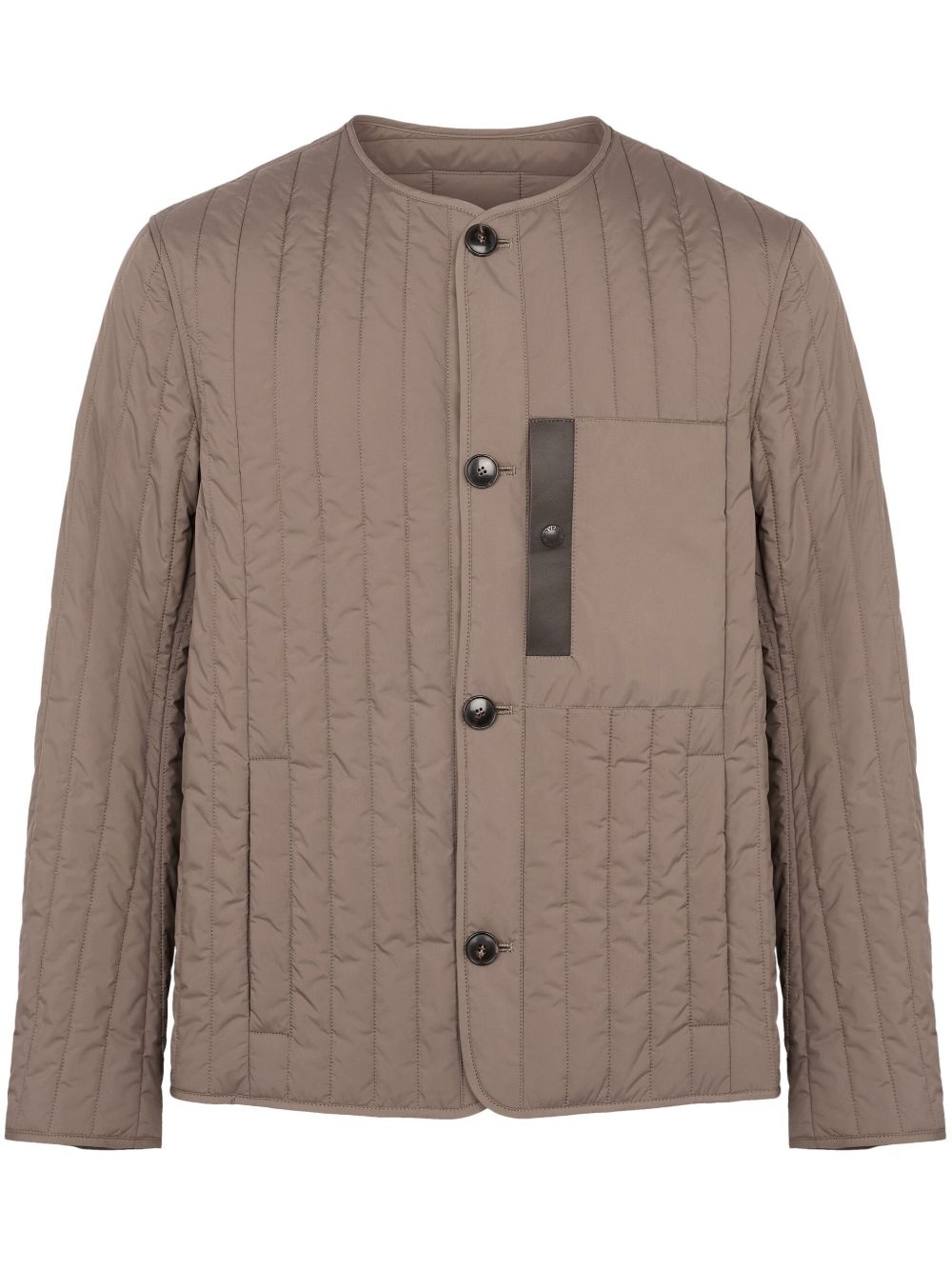 quilted jacket Highlights - Beige - Front button fastening - Chest patch pocket - Two side welt pockets - Straight hem Made in France Composition Polyester 97%, Lamb Skin 3%
