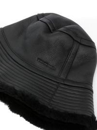 reversible bucket hat Highlights - Black - Lambskin - Shearling - Reversible - Tonal stitching - Debossed logo to the front - Flat crown - Curved narrow brim Made in France Composition Lamb Skin 100%, Lamb Fur 100% SIZE & FIT Measurement BRIM 2.36 in(6 cm) CIRCUMFERENCE 20.47 in(52 cm)
