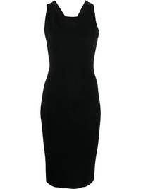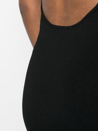 ribbed cross-strap midi dress black fine ribbed rear criss-cross straps round neck sleeveless straight hem mid-length Made in France Composition Rayon 83%, Polyester 17% SIZE & FIT Model measurements Height 5 ft 10 in(1.79 m) Bust/Chest 33.07 in(84 cm) Hips 35.03 in(89 cm) Waist 24.4 in(62 cm) FittingInformation This piece fits true to size. We recommend you get your regular size Cut for a slim fit Made with a mid-weight fabric