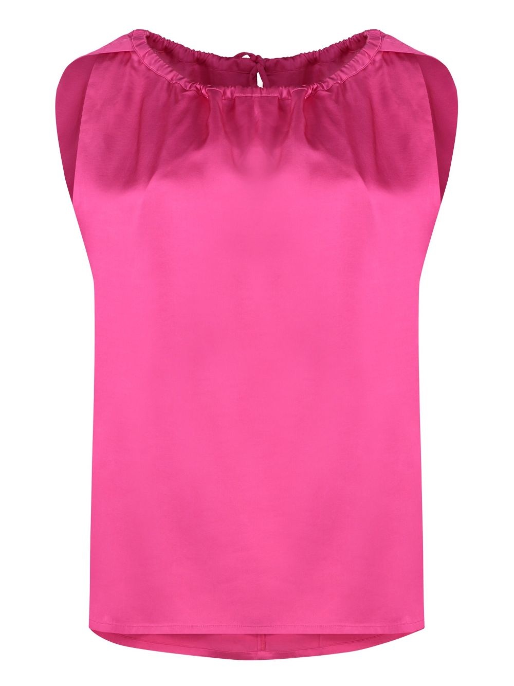satin blouse Highlights - Fuchsia pink - Rear tie fastening - Gathered neckline - Sleeveless - Keyhole detail to the rear Made in France Composition Viscose 100%