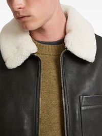 shearling collar leather jacket Highlights - Black - Sheepskin - Zip fastening - Shearling collar - Detachable collar - Long sleeves - Chest patch pocket - Straight hem Made in France Composition Lining: Acetate 52%, Cupro 48% Outer: Sheep Skin/Shearling 90%, Lambskin 10%