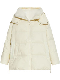 shearling-lined jacket Highlights - Light beige - Panelled design - Padded panels - Shearling lining - Classic hood - Front press-stud and zip fastening - Long sleeves - Two side welt pockets - Straight hem Made in France Composition Outer: Polyamide 100%, Sheep Skin/Shearling 100% Lining: Down 95%, Feather 5% SIZE & FIT FittingInformation Designed to be unstructured, offering a loose fit throughout The internal drawstring at the hem allows for fitted preferences Made from a padded non-stretch fabric, giving it no natural elasticity Washing instructions Read Manufacturer Guidelines