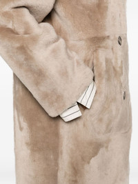sheepskin double-breasted coat Highlights - Beige - Double-breasted - Button fastening - Notched lapels - Front pockets - Long sleeves Imported Composition Sheepskin 100% SIZE & FIT Model measurements Height 5 ft 11 in(1.8 m) Bust/Chest 31.49 in(80 cm) Hips 36.61 in(93 cm) Waist 24.4 in(62 cm) Washing instructions Read Manufacturer Guidelines