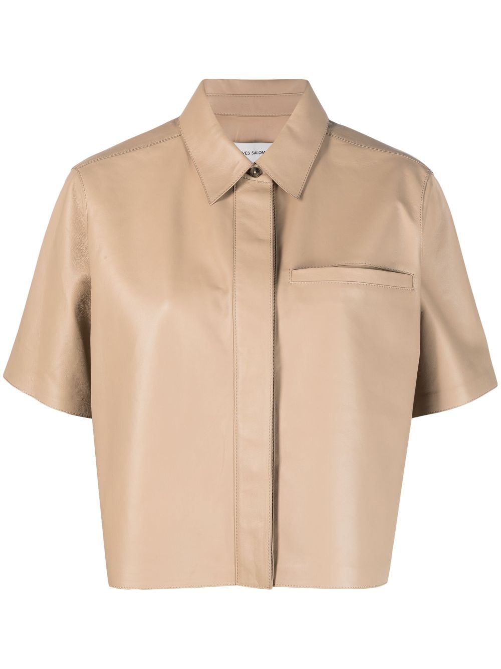 short-sleeve lambskin shirt sesame beige lambskin classic collar concealed front fastening chest patch pocket short sleeves straight hem Made In France Composition Lambskin 100%
