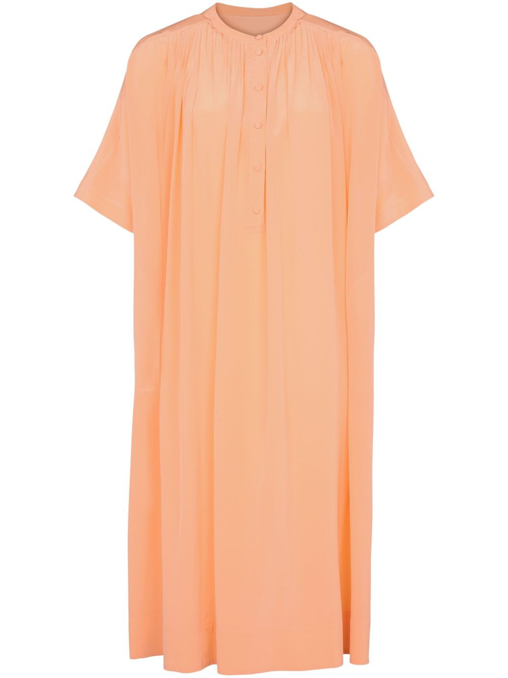 silk midi skirt Highlights - Amber orange - Short front button fastening - Round neck - Short sleeves - Straight hem Made in France Composition Outer: Silk 100% Lining: Viscose 100% Washing instructions Read Manufacturer Guidelines