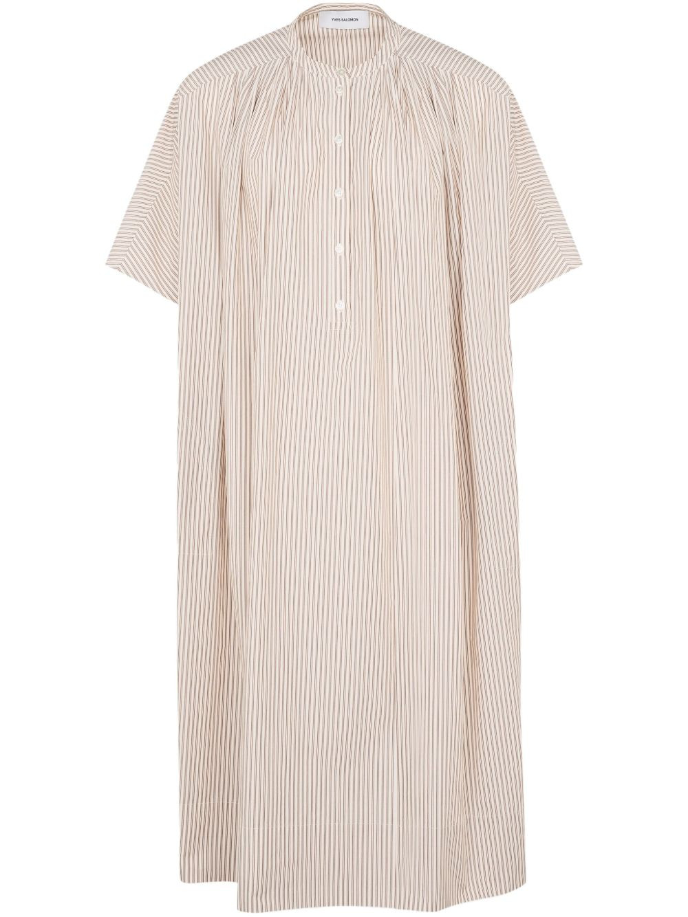 striped midi dress Highlights - Sand beige - Short front button fastening - Round neck - Short sleeves - Straight hem Made in France Composition Cotton 100%
