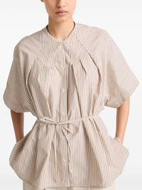 striped pleated poplin shirt light brown front button fastening short sleeves tied waist fully pleated Made in France Composition Cotton 100% Washing instructions Read Manufacturer Guidelines