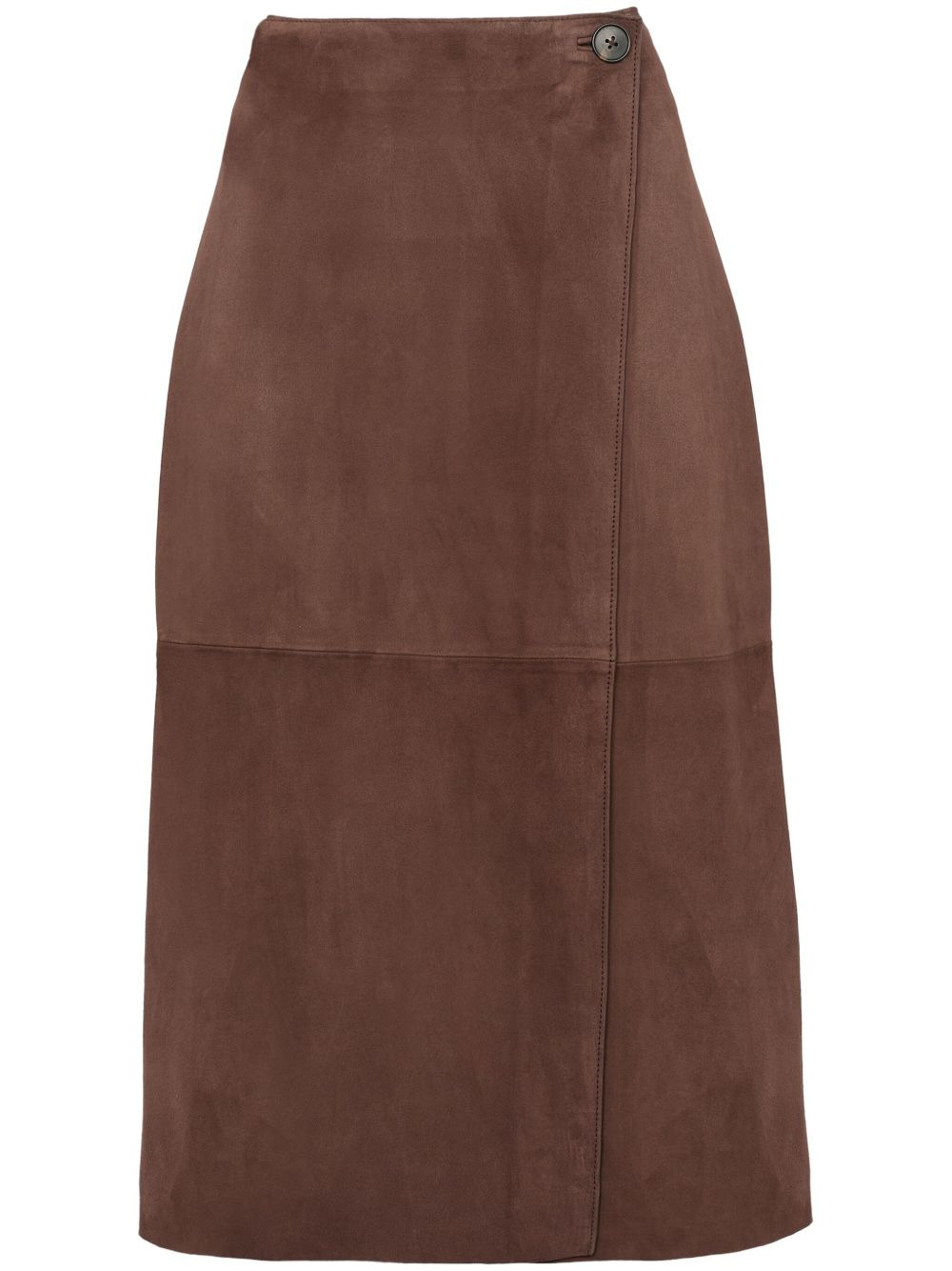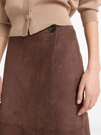suede midi skirt Highlights - Chestnut brown - Side button fastening - Wrap design - Panelled design - A-line Made in France Composition Lambskin 100% Washing instructions Specialist Cleaning