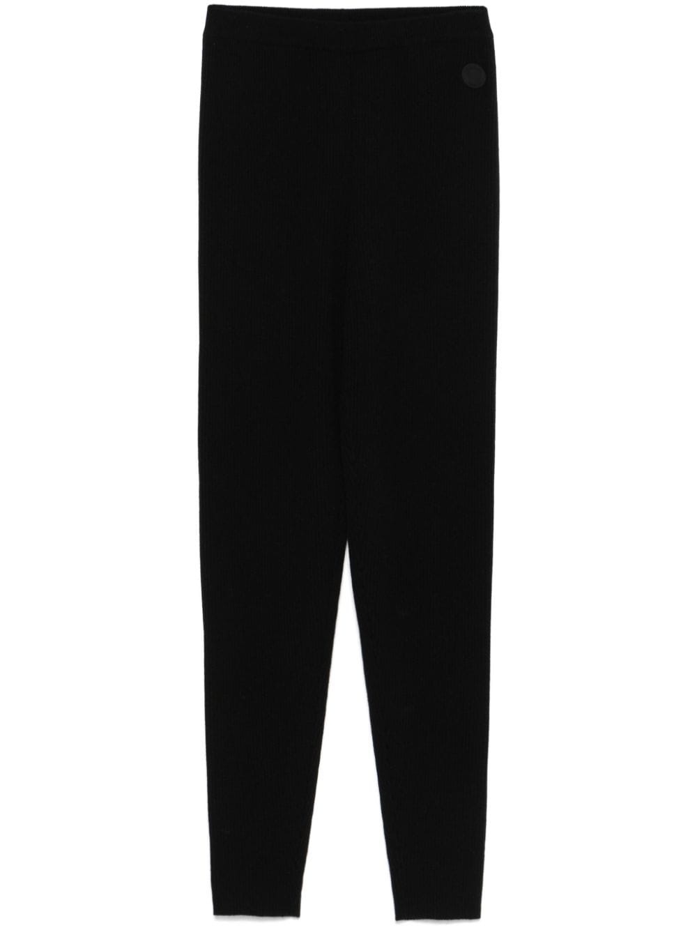tapered trousers Highlights - Black - Wool-cashmere blend - Ribbed knit - Tapered leg - Elasticated waistband - Logo patch to the side Imported Composition Wool 70%, Cashmere 30% SIZE & FIT FittingInformation Designed for a slim fit, these trousers offer a close fit at the waist, allowing a comfortable close fit and some movement over the leg The elasticated waist allows for a comfortable fit Made with a midweight knit, this piece offers some stretch