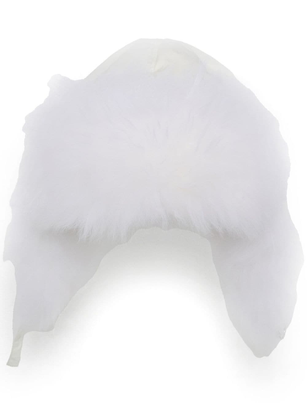 technical cashmere ushanka hat Highlights - White - Duck down - Cashmere - Technical jersey - Faux-fur detailing - Ear flaps Made in France Composition Outer: Polyester 80%, Sheep Skin/Shearling 20% Lining: Polyester 100%, Duck Down 95%, Duck Feathers 5%