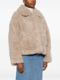 teddy-collared jacket Highlights - Beige - Teddy texture - Collared neckline - Long sleeves - Cropped length Imported Composition Outer: Wool 95%, Polyamide 5% Lining: Silk 100% Trims: Lamb Fur 100% SIZE & FIT Model measurements Height 5 ft 11 in(1.8 m) Bust/Chest 31.49 in(80 cm) Hips 36.61 in(93 cm) Waist 24.4 in(62 cm) Washing instructions Read Manufacturer Guidelines