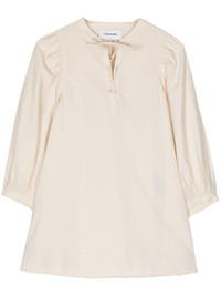 tie-neck silk seersucker blouse Highlights - Ivory white - Silk blend - Seersucker texture - Front tie fastening - Detachable neck tie - Eyelet detailing - Three-quarter length puff sleeves - Gathered cuffs - A-line - Straight hem Made in France Composition Silk 80%, Polyamide 20%
