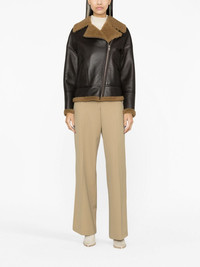 zip-up leather jacket Highlights - Cedar brown/cognac brown - Lambskin/shearling - Shearling notched collar - Off-centre front zip fastening - Long sleeves - Cuff zips - Two press-stud fastening side pockets - Straight hem - Shearling trim - Shearling lining Made in France Composition Outer: Lambskin 100% Lining: Lamb Fur 100% SIZE & FIT Model measurements Height 5 ft 10 in(1.77 m) Bust/Chest 32.67 in(83 cm) Hips 35.43 in(90 cm) Waist 23.62 in(60 cm) Measurement CHEST 40.15 in(102 cm) SLEEVE LENGTH 19.68 in(50 cm) LENGTH 24.01 in(61 cm) FittingInformation Designed to be unstructured, offering a loose fit throughout Firm leather offering little flexibility to maintain its durability and sturdiness This piece fits true to size – take your usual size